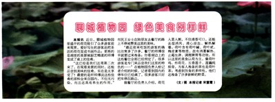 据餐厅的负责人介绍,荷花入菜入粥,不但清香可口,还能去湿消风、清心凉血、解热解毒。荷叶含有荷叶碱、荷叶甙、桷皮素等物质,故有消暑解热、止渴生津、调理脾胃等功效。所以这里的美食以荷为主,像荷叶鸡、炸荷花、五香莲子、莲藕炖排骨,为客人准备的茶也是荷叶茶;考虑到饮食的多样性,他们还准备了许多新鲜的野菜。