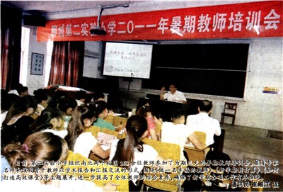 日前,第二实验小学组织南北两个校区160余位教师参加了为期三天的暑期教师培训会,邀请专家名师和该师骨干教师以学术报告和汇报交流的形式,围绕《做一名幸福的教师》、《新学期新打算》、《如何打造高效课堂》等主题展开,进一步提高了全体教师的综合素养,确保了新学期各项工作有序推进。通讯员 崔殿江 摄