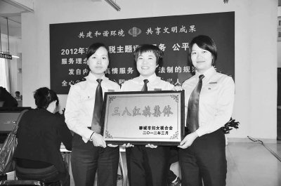 税务登记、发票管理、税款征收、涉税咨询……区地税局纳税服务中心的女税官们,在平凡的岗位上兢兢业业,恪尽职守,辛勤工作,出色地完成了各项工作任务。近日,区地税局纳税服务中心被聊城市妇联授予“三八红旗集体”荣誉称号并授牌。