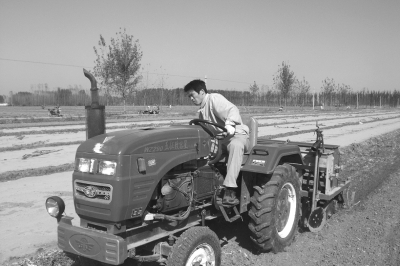 张炉集镇积极组织农业机械200余台,抓住有利时机及时播种小冬麦,确保来年获得好收成。图为该镇肖天崇村的侯喜章正在播种小麦。