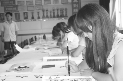 作为聊城市艺术特色学校,聊城四中的书法专业更是发展迅速,形成了独特的教学特色,培养了一大批优秀的书法专业人才,弘扬了中华民族优秀传统文化。图为四中学生在上书法课。