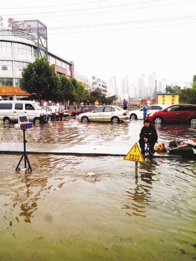 7月26日,一场罕见的暴雨给水城人民的出行带来了不便,图为卫育路防汛点正在全力排放道路上的积水。