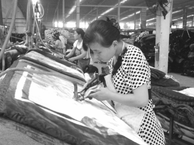 9月23日,中奥毯业有限公司车间内,工人正在加紧生产。今年以来,我区不断加大对企业的科技扶持,使企业不断加大科技投入,购进先进设备,增强企业对外竞争力,并在巩固国际市场的同时积极地开拓国内市场。