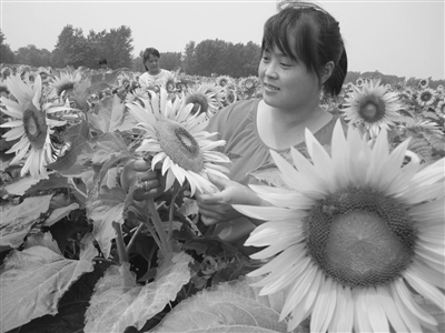 6月26日,郑家镇几名农家妇女正在田间管理油葵。
