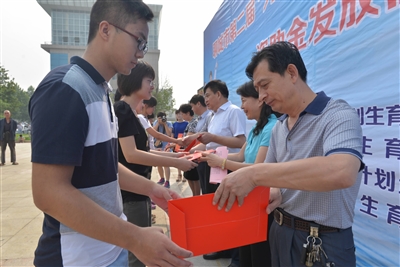 为认真践行党的群众路线,落实计生政策,密切党群干群关系,8月14日,由区卫计局和区计划生育协会共同承办的第二届“为希望扬帆——计生助学”资助金发放仪式在中国运河文化博物馆小广场拉开帷幕,发放仪式上,对辖区符合条件的35名计生困难家庭的大学生进行了现场资助,共发放资助金7万元。特约记者 正文 摄