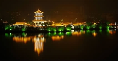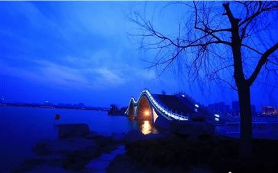 那平静的湖面,犹如一面硕大的银镜。夜色中,古城由灯光勾勒出的画面,又像是漂浮在静谧的湖面上,给城市增添了一份沉静。结束了一天的忙碌的工作,泛舟湖上,乘着习习凉风,您将沉醉在东昌湖幽美的夜色中。
