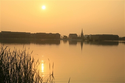 [傍晚东昌]傍晚,信步来到湖边,东昌湖在夕阳的余晖下,波光粼粼,清澈见底,一个个小船泛舟湖上。极目远望,水连天,天连水,水天一线。这麽说可能有点夸张,可是我没有见过海,只能这样来形容这片美丽而浩瀚的湖了。唐代诗人王勃在《滕王阁序》中写道,落莺与孤雁齐飞,秋水共长天一色。此时脑海中浮现的也只有这句诗了。