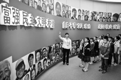 近日,合肥市文博苑社区组织辖区翠庭园小学部分学生走进安徽好人馆,聆听讲解员介绍安徽省“全国道德模范”和“中国好人”的先进事迹,培养小学生积极的人生态度和良好的道德品质。 新华社