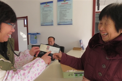 1月24日,张炉集镇殷堂村群众许秀英在镇便民服务中心拿到老年证后高兴得合不拢嘴。近年来,该镇通过设立便民服务管理中心,为群众提供一站式服务,将联系群众紧密的民政、新农合、老龄办、司法等服务窗口统一集中办公,极大地方便了辖区群众。