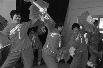 1月22日,在郑家镇王庄村文化活动室内,农家妇女们在扇子舞中健身,自娱自乐,喜迎新春佳节的来临。本报记者 杜宁 特约记者 李学贵 摄