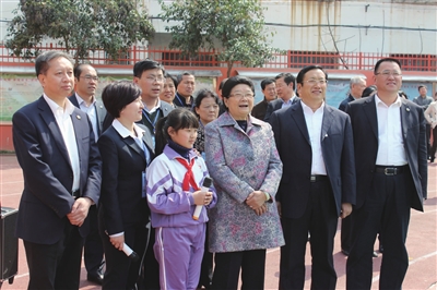 顾秀莲来到阳光小学,先后观看了阳光小学的“两史”展板、学生诗歌朗读和“两史”纪实宣传片。视察中,她仔细询问有关情况,不时称赞我区关工委工作“做得很好,很有特色”。