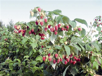 走出大棚,随着肖秀城的脚步,无意间看到一颗树上零星点缀着像草莓一样的果品。询问得知,这是树莓的一种,“红树莓”。由于营养成分和出汁率优于众多水果,被联合国粮农组织列为“天然绿色食品”和“健康食品”,发展前景极为广阔。肖秀城告诉记者,目前公司致力于树莓的引进,发展,加工。为地方农民发展经济提供最好的示范服务和优良苗木,为农民致富做出应有的贡献。