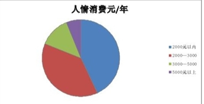 (四)随份子等人情消费得到控制。在“您一年内人情消费(随礼)是多少”这一选项中, 43%的村民选择了“2000元以内”。具体见图一:《人情消费基本情况》