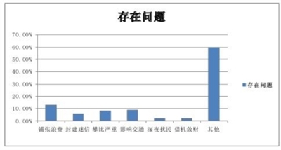 (三)不文明殡葬行为还不同程度存在。有59%的村民认为“设灵堂、请戏班弹唱等严重扰民”是不文明行为,13%的村民反对白事“大操大办”。
