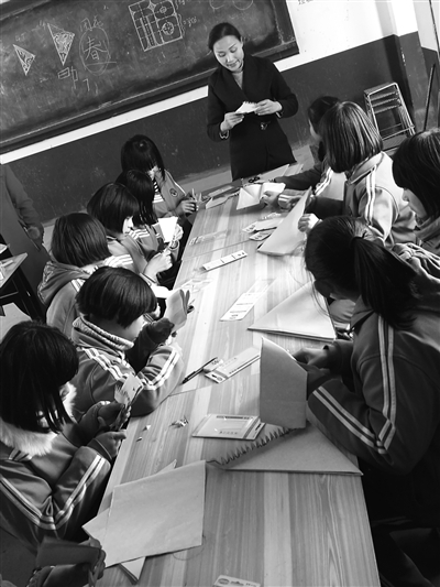 3月16日,聊城市民间剪纸艺术家梁颖来到斗虎屯镇中学为学生上剪纸艺术文化课。