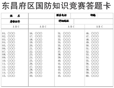 东昌府区国防知识竞赛答题卡