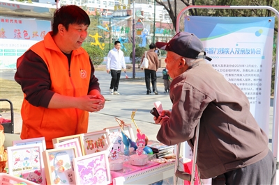 近日,在“爱心集市”公益摊位上,工作人员正在向群众介绍社会工作的作用和意义,提升公众对社工的认知度。