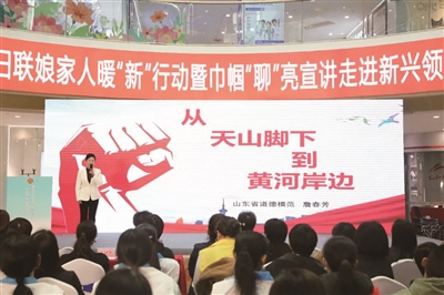 为深入贯彻习近平总书记在同全国妇联新一届领导班子成员集体谈话时的重要讲话精神,落实全国妇联和省妇联娘家人暖“新”三年行动工作部署要求,切实做好新兴领域妇女群众的关爱服务工作,市妇联在万达广场一楼举办娘家人暖“新”行动暨巾帼“聊”亮宣讲走进新兴领域专场活动。我区要求,要以此次活动为新起点,持续深化作风建设,突出实干争先导向,通过政策支持、典型示范、服务保障“三位一体”举措,充分激发女职工创新创造活力,为我区高质量发展凝聚更多“新”力量。区妇联宣